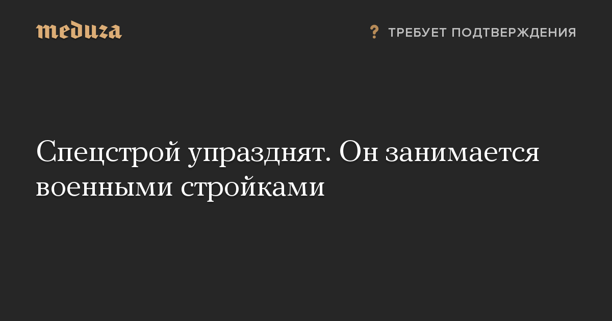 Спецстрой упразднят. Он занимается военными стройками