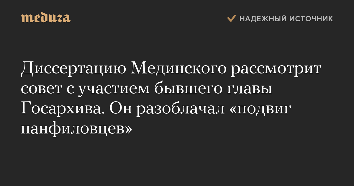 Диссертацию Мединского рассмотрит совет с участием бывшего главы Госархива. Он разоблачал «подвиг панфиловцев»
