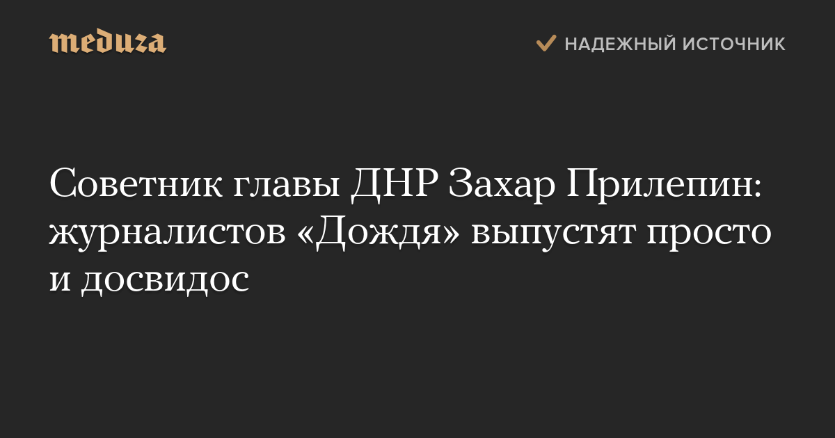 Советник главы ДНР Захар Прилепин: журналистов «Дождя» выпустят просто и досвидос