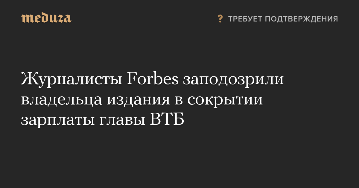 Журналисты Forbes заподозрили владельца издания в сокрытии зарплаты главы ВТБ
