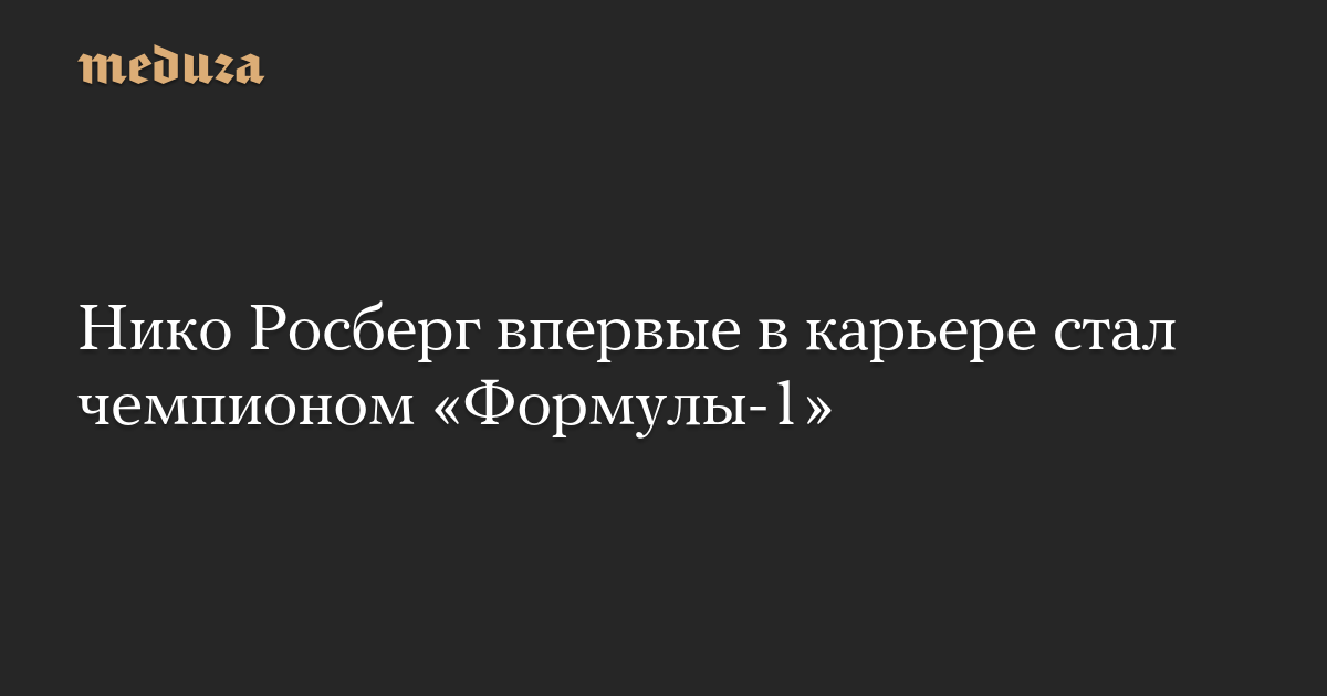 Немецкий гонщик Нико Росберг впервые в карьере стал чемпионом «Формулы-1», заняв второе место на Гран-при Абу-Даби. Первое место занял его партнер по команде «Мерседес», трехкратный чемпион Льюис Хэмилтон.