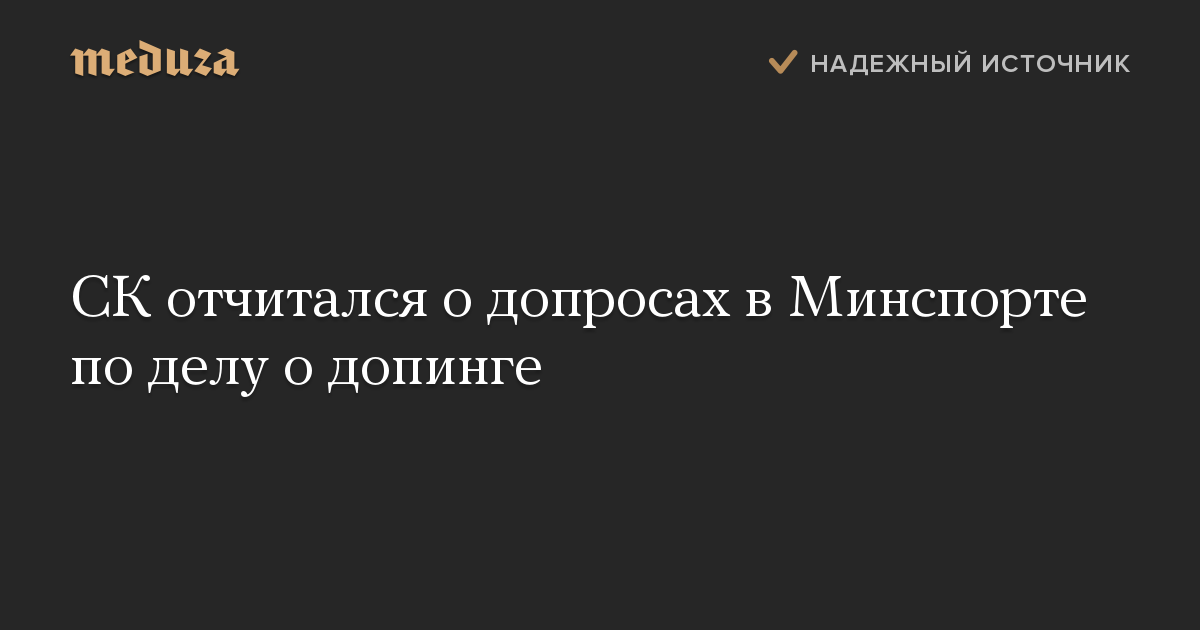 СК также допросил спортсменов, которые рассказали, что бывший глава московской антидопинговой лаборатории Григорий Родченков «склонял их к употреблению препаратов, свойства которых не были известны». В США направлен запрос для получения показаний Родченкова.