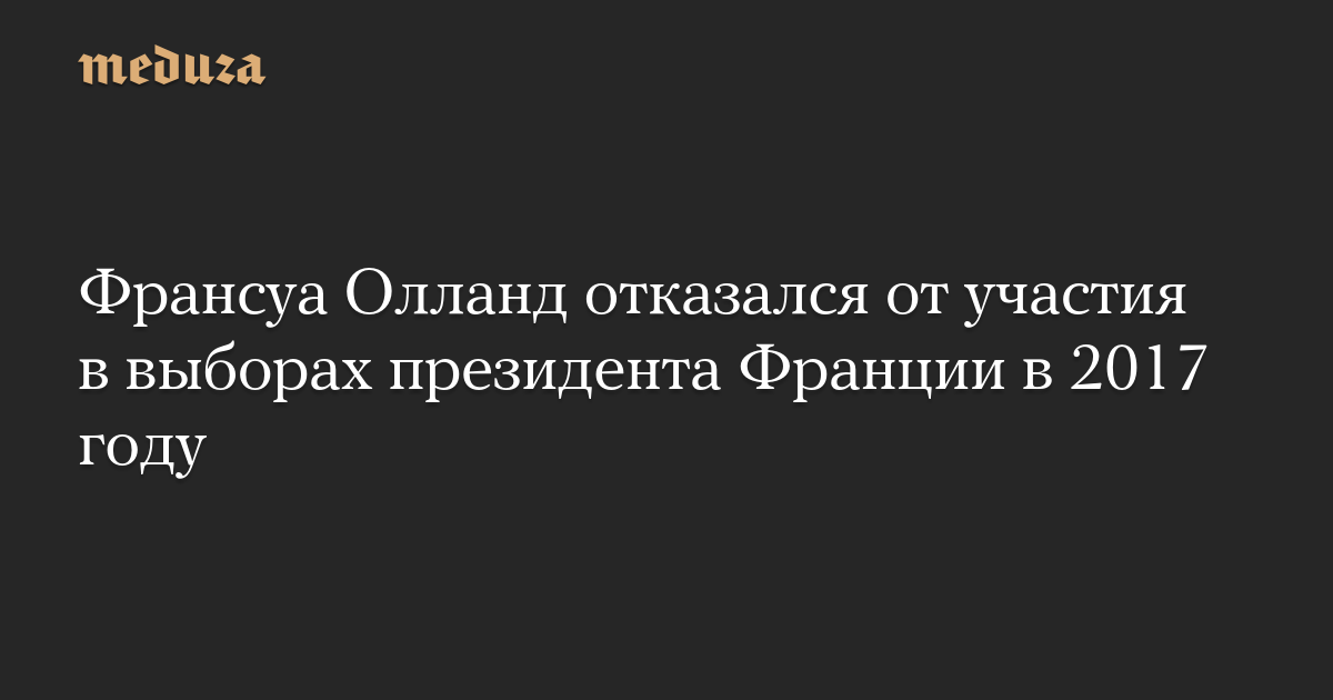 Президент Франции Франсуа Олланд заявил, что не будет участвовать в выборах главы государства в 2017 году.