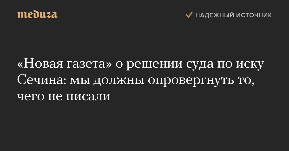 «Новая газета» о решении суда по иску Сечина: мы должны опровергнуть то, чего не писали