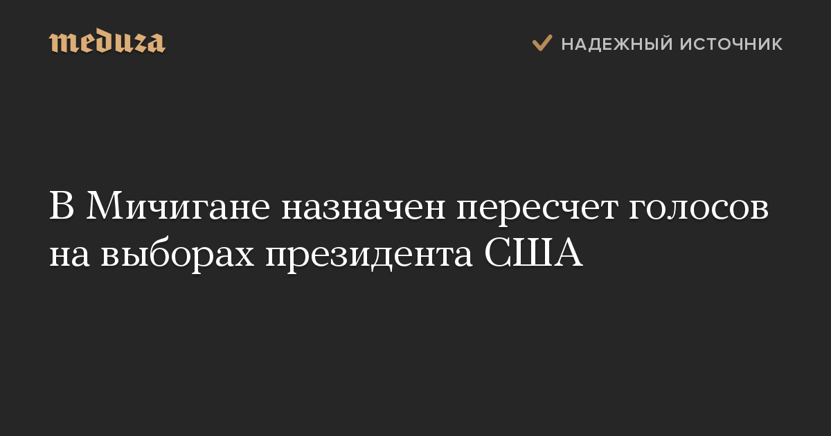 Суд постановил начать пересчет голосов на президентских выборах в США в штате Мичиган. Пересчет должен начаться в полдень 5 декабря (20:00 по Москве) и завершиться к 13 декабря.