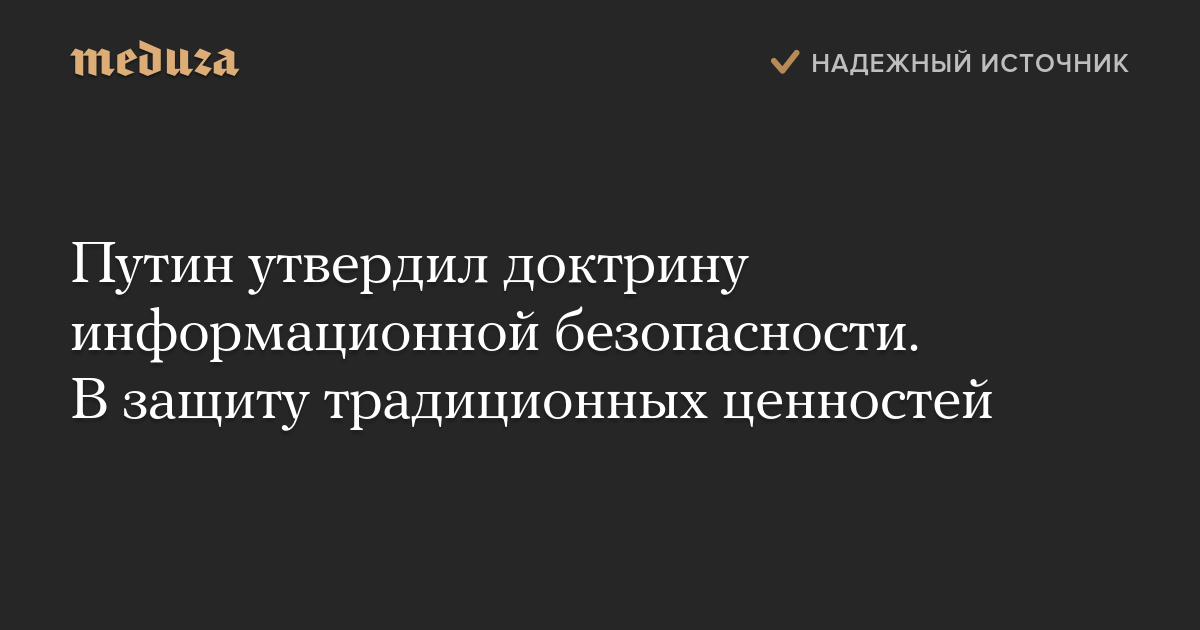 В качестве одного из направлений обеспечения информационной безопасности указана «нейтрализация информационного воздействия, направленного на размывание традиционных российских духовно-нравственных ценностей».