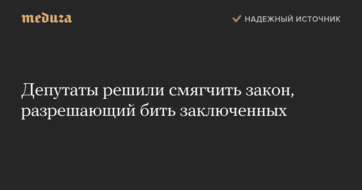 Законопроект, регламентирующий применение силы к заключенным, был принят Госдумой в первом чтении в октябре 2015 года. В этом документе говорится, что бить заключенных разрешается «для пресечения преступлений или нарушений режима содержания», «для пресечения неправомерного сопротивления или неповиновения осужденного», а также для пресечения «иных противоправных действий, дезорганизующих деятельность учреждения, исполняющего наказания».