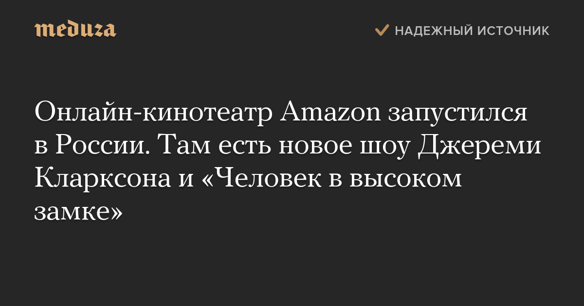 Онлайн-кинотеатр Amazon запустился в России. Там есть новое шоу Джереми Кларксона и «Человек в высоком замке»