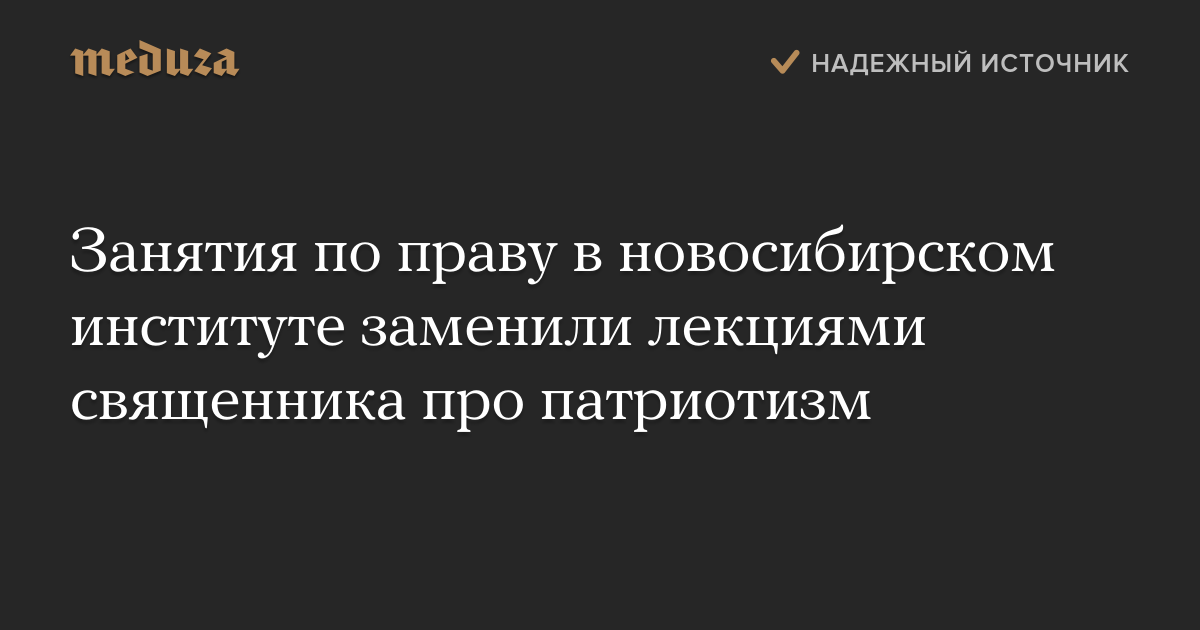 Студентам Новосибирского юридического института заменили занятия по праву лекциями священника РПЦ, который рассказал про патриотизм и веру в царя. Об этом сообщает «Тайга.инфо» со ссылкой на студентов вуза.