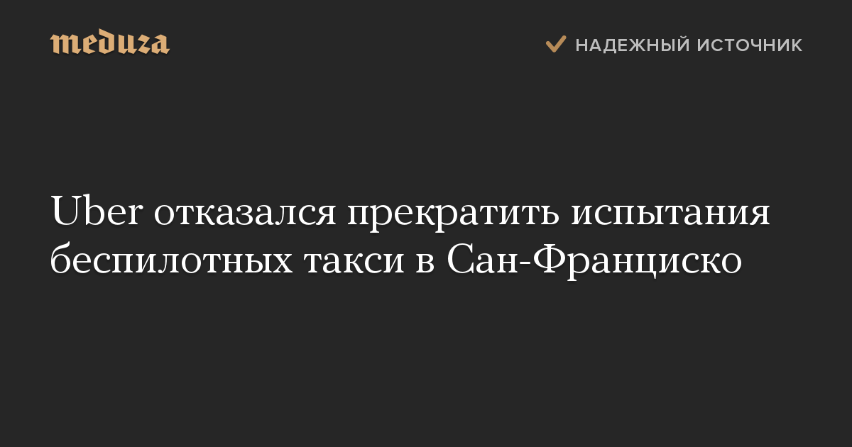 Uber отказался прекратить испытания беспилотных такси в Сан-Франциско