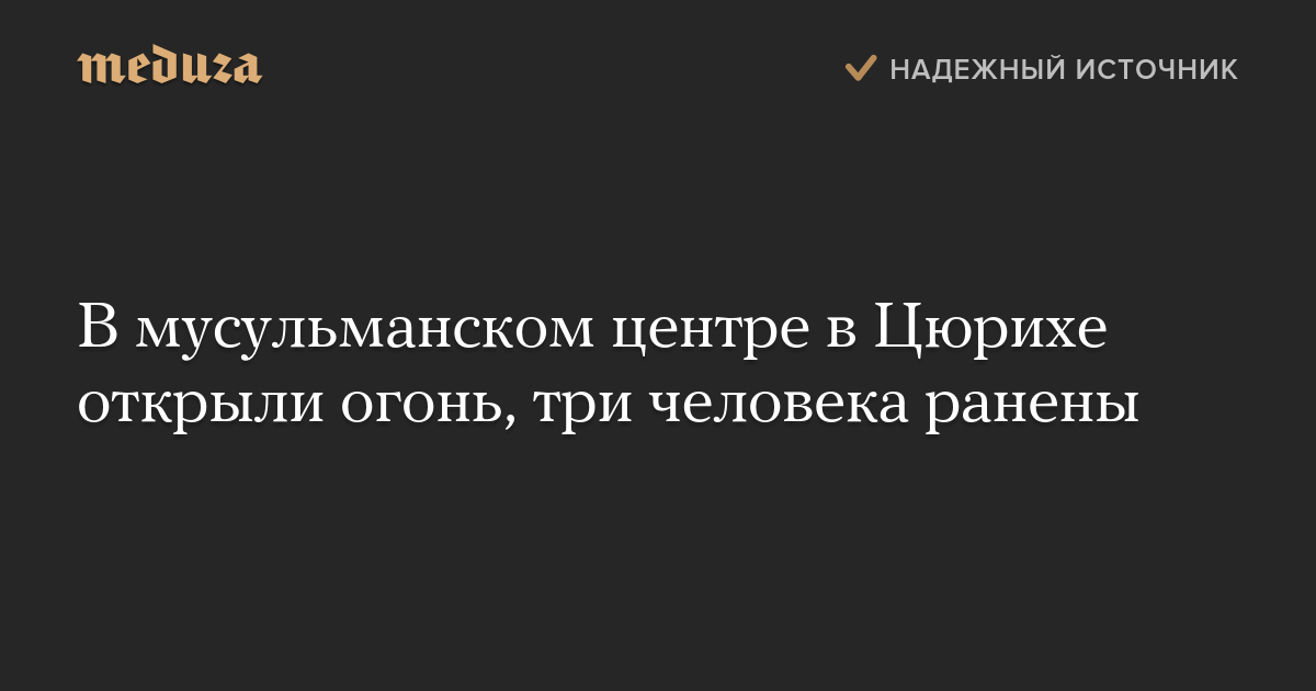 В Цюрихе в здании мусульманского молельного дома произошла стрельба, в результате которой были ранены три человека.