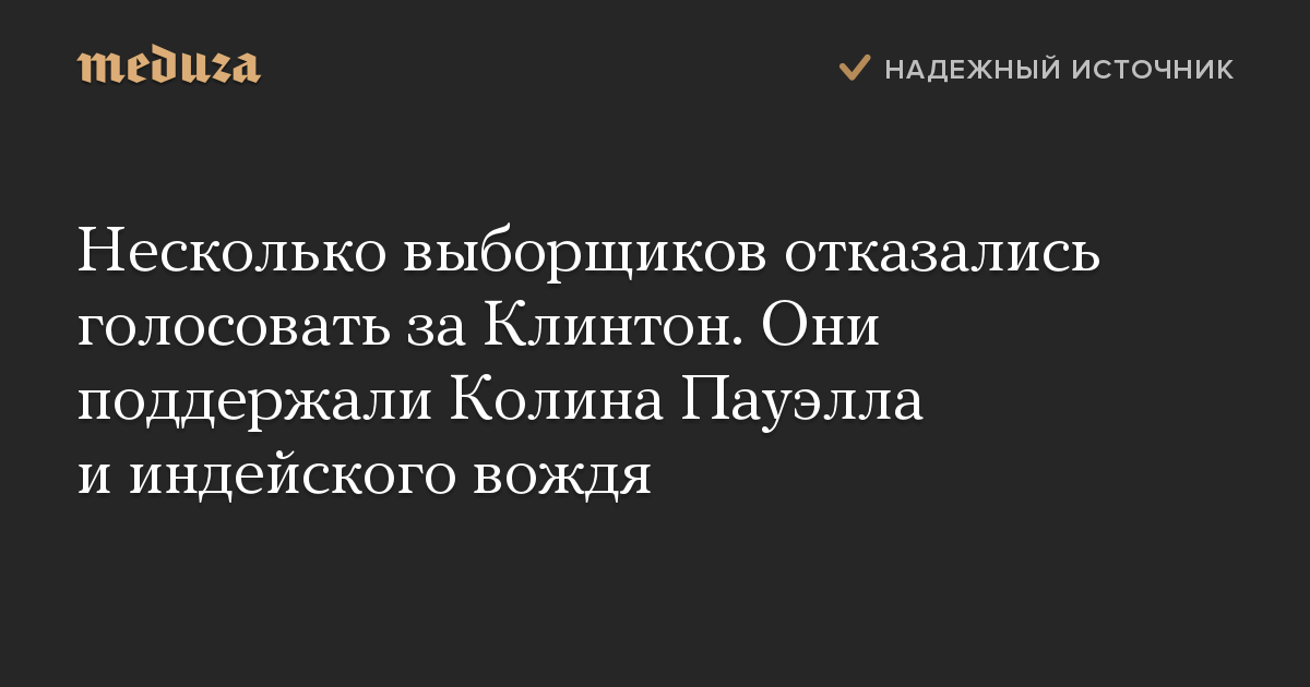 Несколько выборщиков отказались голосовать за Клинтон. Они поддержали Колина Пауэлла и индейского вождя