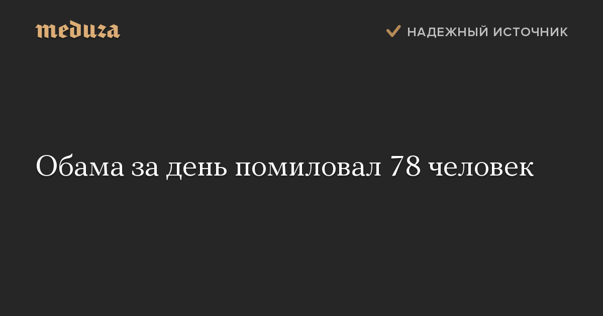 Президент США Барак Обама 19 декабря смягчил наказание 231 заключенному — 78 человек были помилованы, у 153 сокращен срок заключения. Это самое массовое единовременное смягчение наказания президентом США в истории страны.