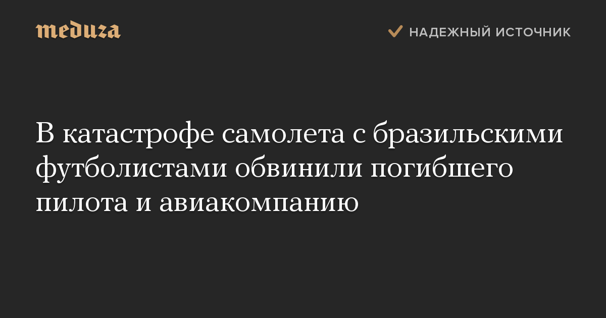 В катастрофе самолета с бразильскими футболистами обвинили погибшего пилота и авиакомпанию