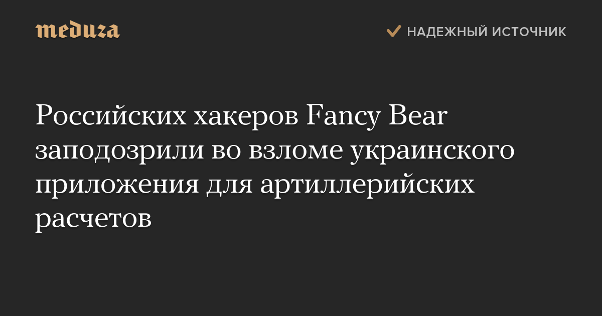 Российских хакеров Fancy Bear заподозрили во взломе украинского приложения для артиллерийских расчетов
