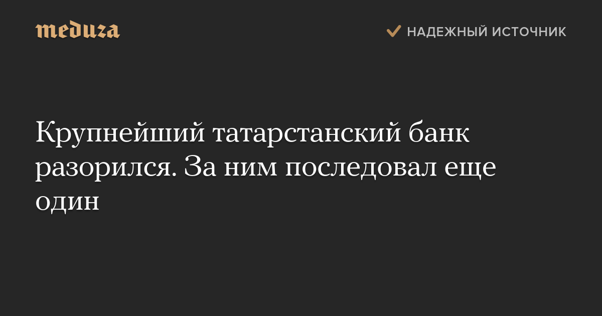 Крупнейший татарстанский банк разорился. За ним последовал еще один