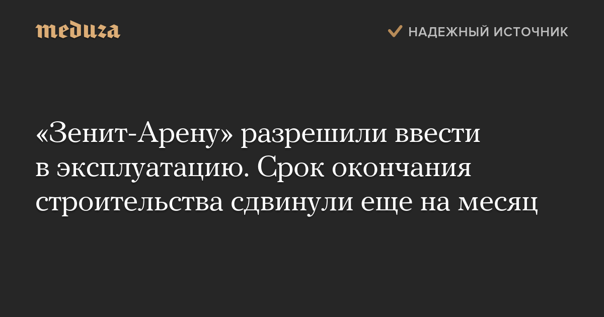 «Зенит-Арену» разрешили ввести в эксплуатацию. Срок окончания строительства сдвинули еще на месяц