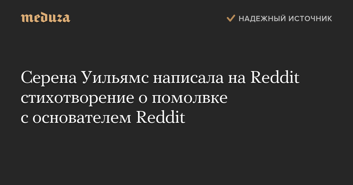 Серена Уильямс написала на Reddit стихотворение о помолвке с основателем Reddit