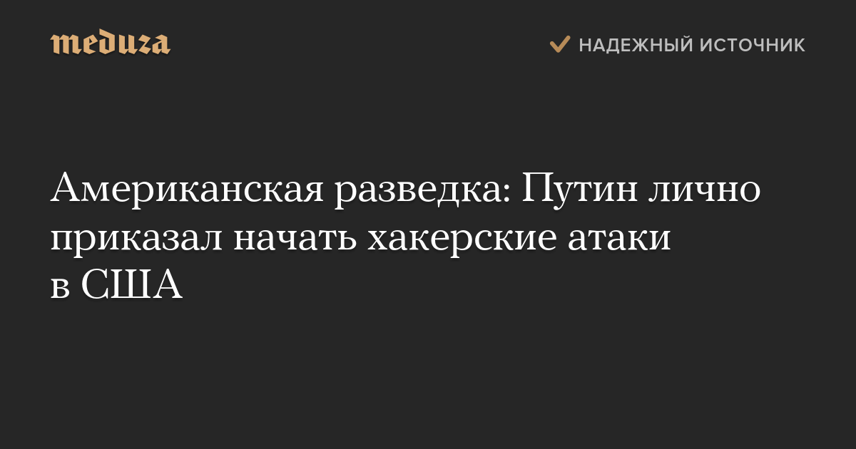 Управление директора национальной разведки США опубликовало доклад, в котором говорится, что президент России Владимир Путин лично распорядился начать «кампанию по вмешательству» в президентские выборы в США. Такой вывод американская разведка делает «с высокой степенью уверенности».