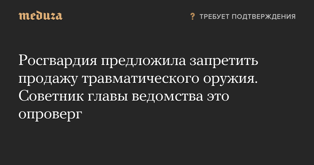 Обновление. Советник главы ведомства Александр Хинштейн заявил, что «инициативы о запрете оборота травматического оружия Росгвардией не разрабатывались и не вносились».