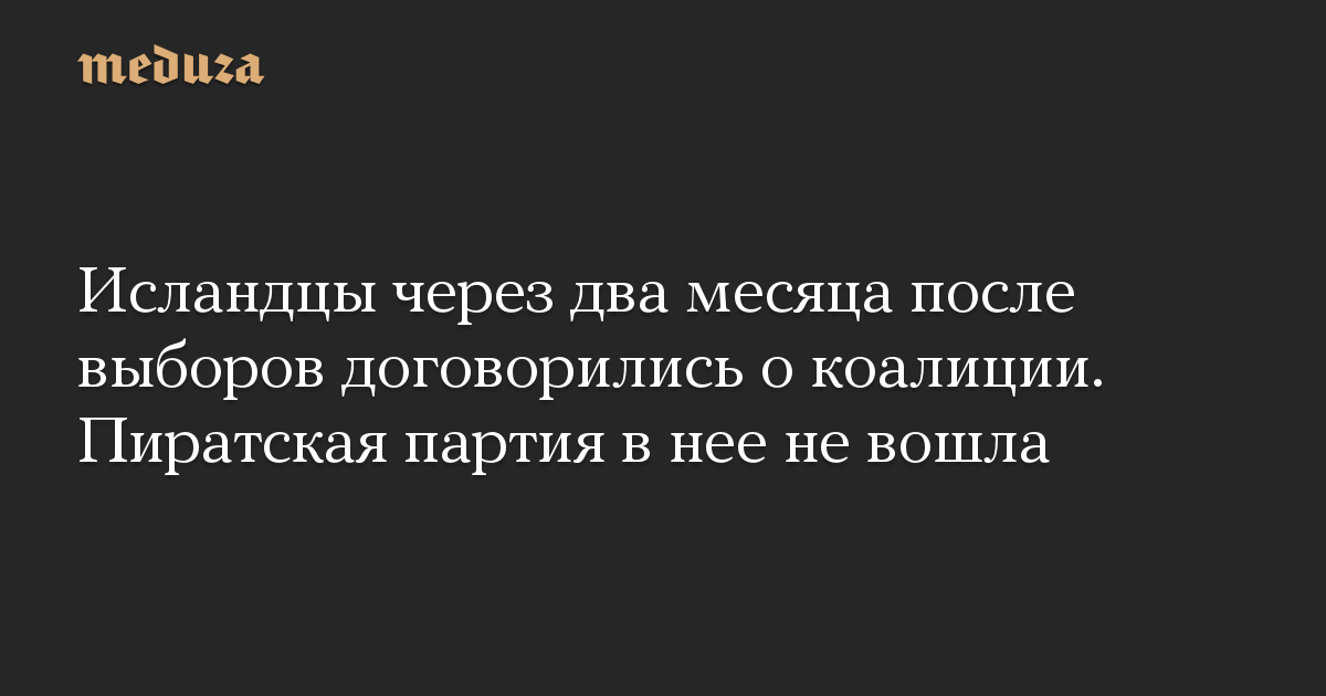 Исландцы через два месяца после выборов договорились о коалиции. Пиратская партия в нее не вошла