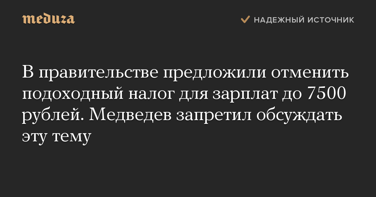 В правительстве предложили отменить подоходный налог для зарплат до 7500 рублей. Медведев запретил обсуждать эту тему