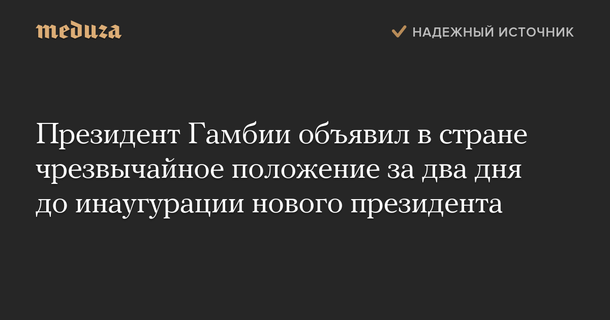 Президент Гамбии объявил в стране чрезвычайное положение за два дня до инаугурации нового президента