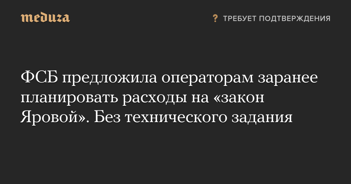 ФСБ предложила операторам заранее планировать расходы на «закон Яровой». Без технического задания