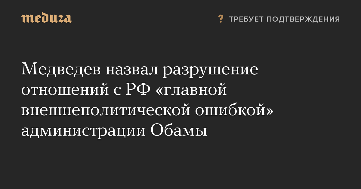 Медведев назвал разрушение отношений с РФ «главной внешнеполитической ошибкой» администрации Обамы