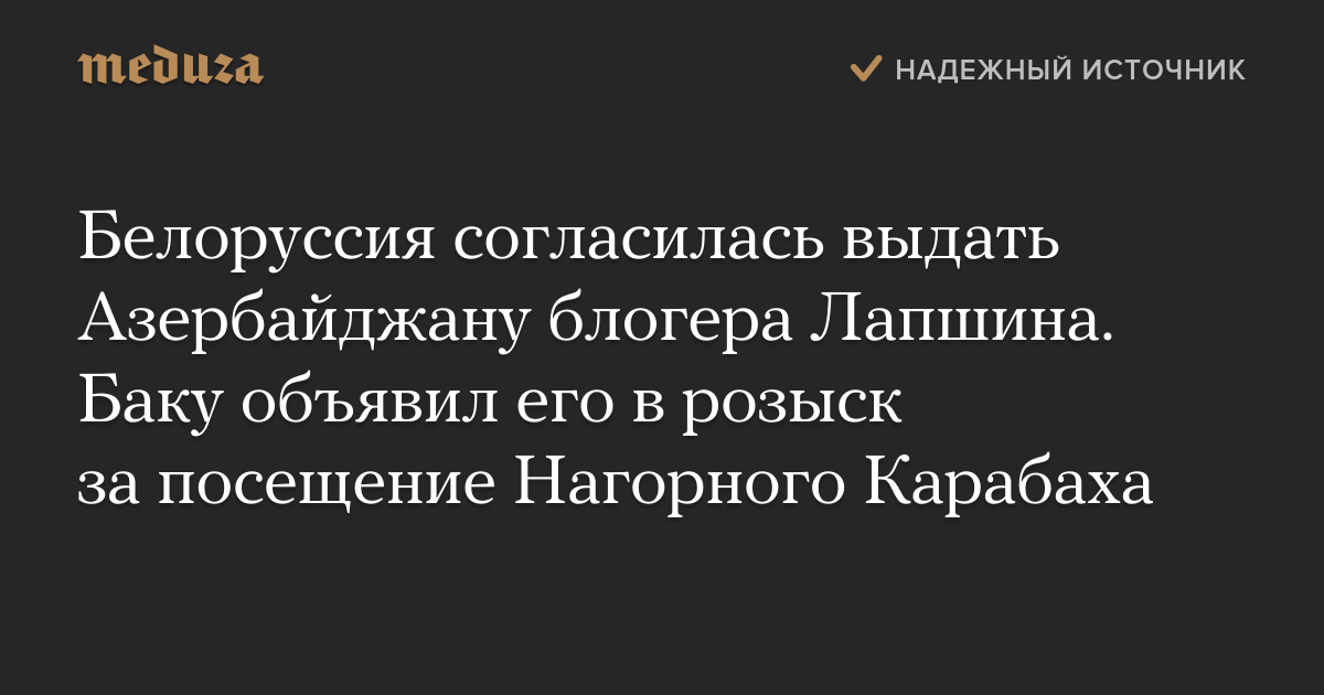 Белоруссия согласилась выдать Азербайджану блогера Лапшина. Баку объявил его в розыск за посещение Нагорного Карабаха