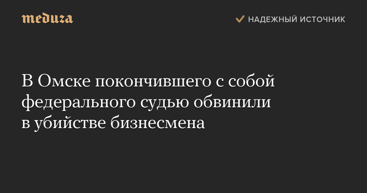 В Омске покончившего с собой федерального судью обвинили в убийстве бизнесмена