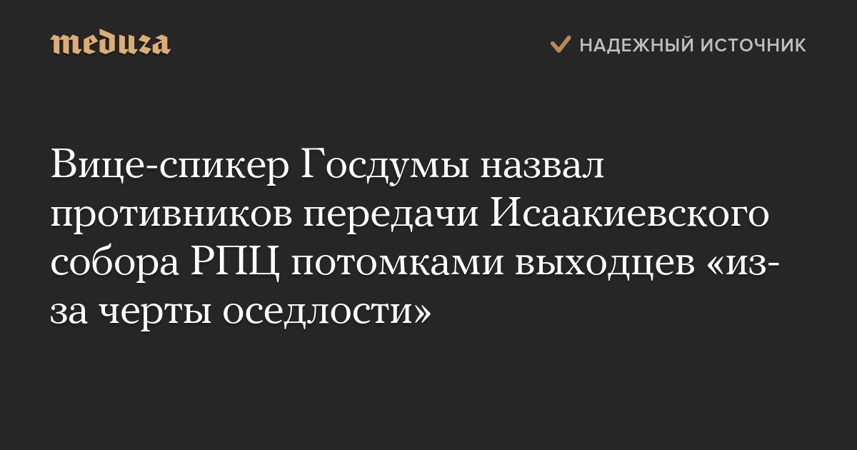 Вице-спикер Госдумы назвал противников передачи Исаакиевского собора РПЦ потомками выходцев «из-за черты оседлости»
