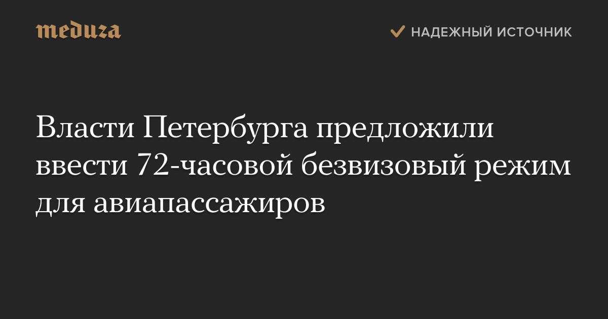 Власти Петербурга предложили ввести 72-часовой безвизовый режим для авиапассажиров