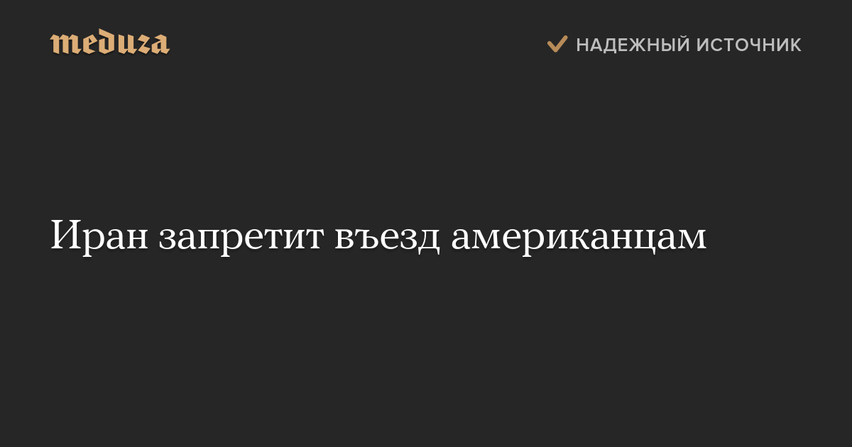 Иран запретит въезд американцам в ответ на отказ США пускать в страну граждан Ирана, Сирии, Ирака, Судана, Ливии, Сомали и Йемена. Когда иранцы введут запрет, в министерстве иностранных дел не уточнили.