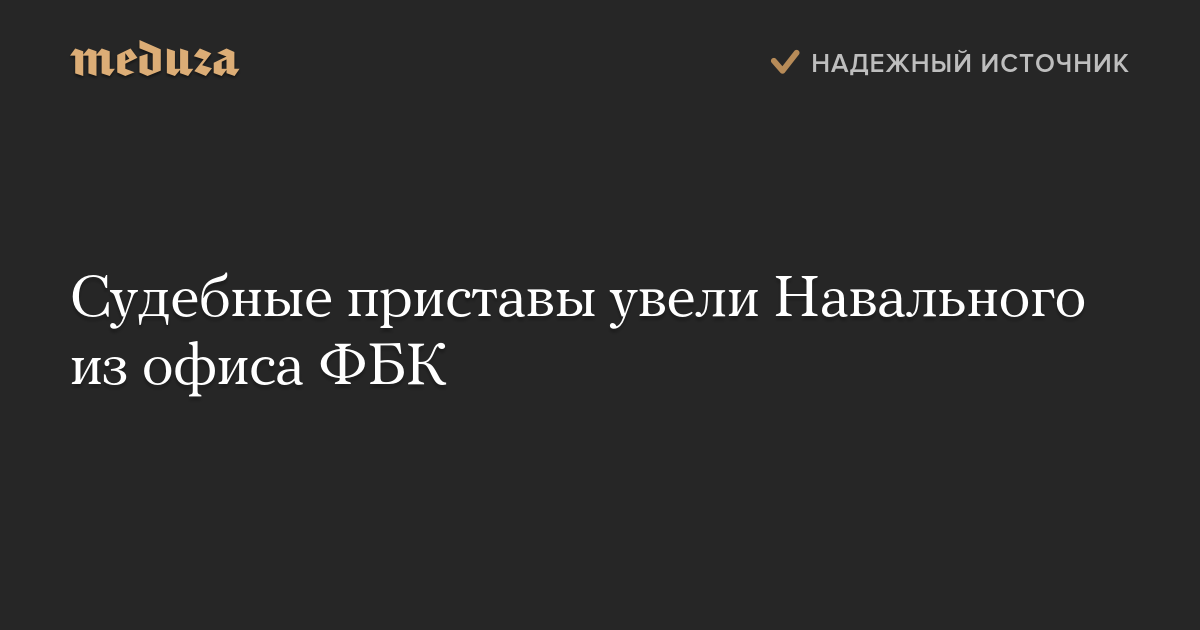 Судебные приставы увели Алексея Навального из офиса Фонда борьбы с коррупцией (ФБК) в Москве. Оппозиционер сообщил, что его решили отвезти в Московское управление службы судебных приставов. С какой целью, неизвестно.