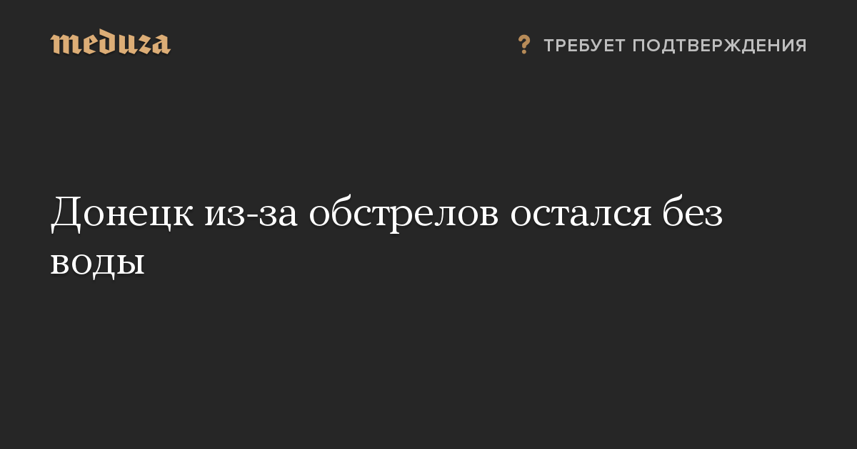 Водоснабжение Донецка прервано из-за обстрела фильтровальной станции, сообщает «Интерфакс» со ссылкой на Донецкое агентство новостей (ДАН).