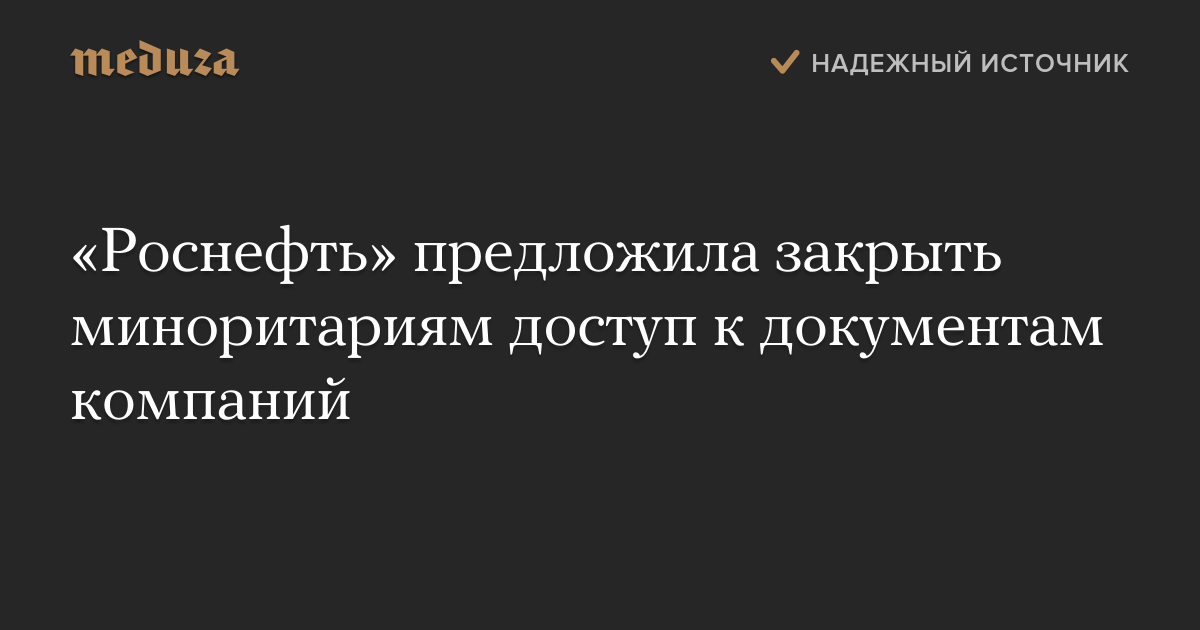 Полный доступ к документам компаний, право на который сейчас есть у всех акционеров, по мнению «Роснефти», следует оставить лишь для владельцев как минимум 25 процентов акций.