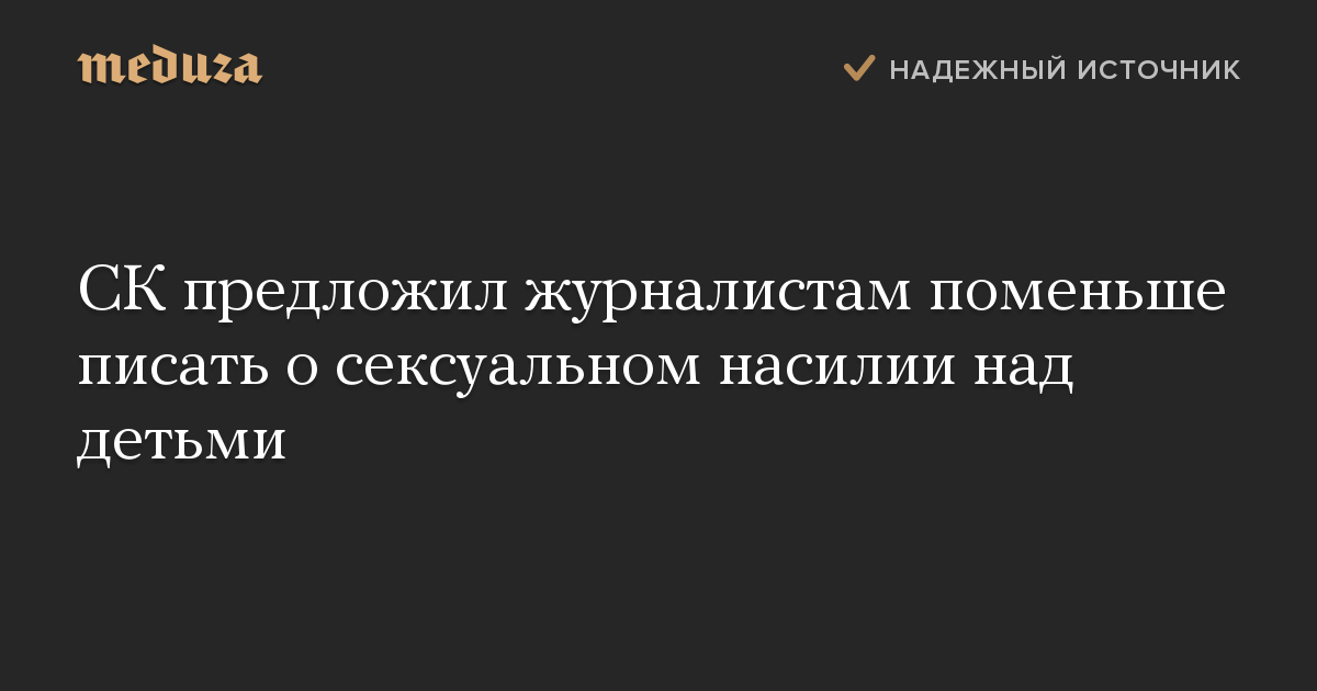 СК предложил журналистам поменьше писать о сексуальном насилии над детьми