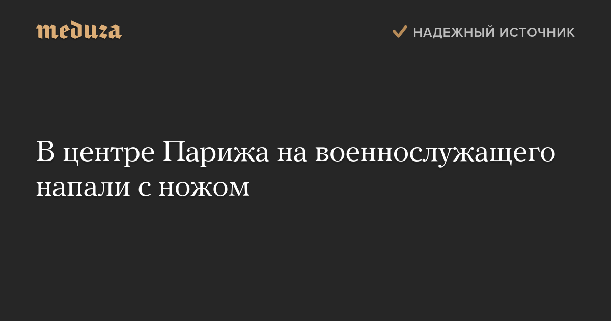 В центре Парижа возле Лувра злоумышленник, вооруженный ножом, напал на французского военнослужащего. Военный открыл огонь по нападавшему, ранив его.