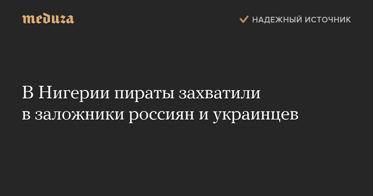 Пираты захватили в заложники семерых российских и одного украинского моряка в территориальных водах Нигерии. Об этом сообщило посольство РФ в Нигерии в своем твитере.