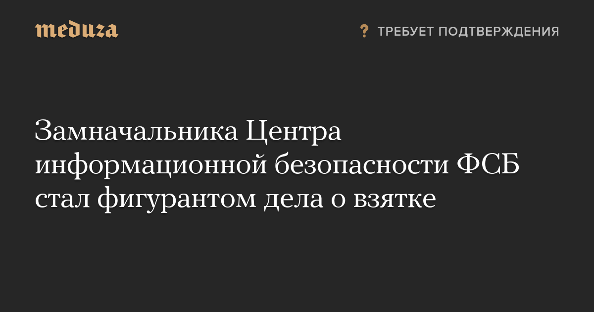 Замначальника Центра информационной безопасности ФСБ стал фигурантом дела о взятке