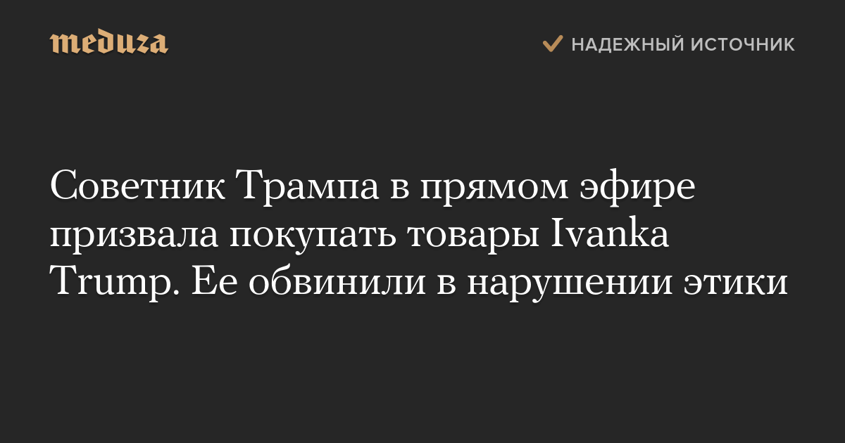 Советник президента США Дональда Трампа Келлиэнн Конуэй, выступая в эфире программы Fox & Friends утром 9 февраля, призвала телезрителей покупать товары под брендом Ivanka Trump, основанным дочерью Трампа Иванкой.