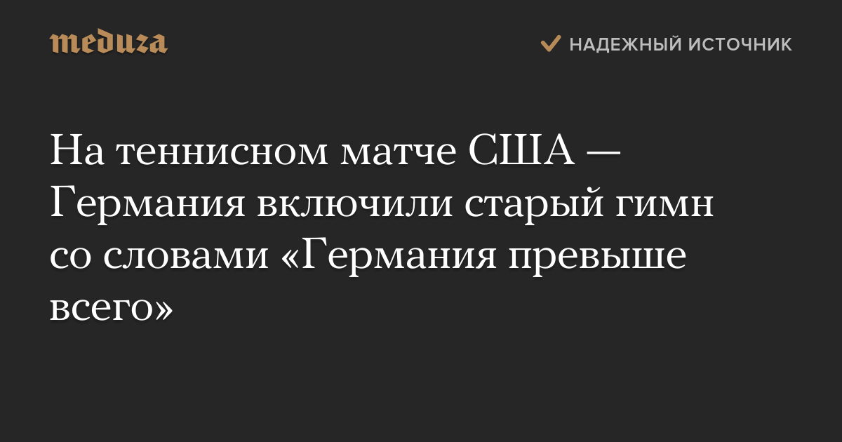 На теннисном матче США — Германия включили старый гимн со словами «Германия превыше всего»