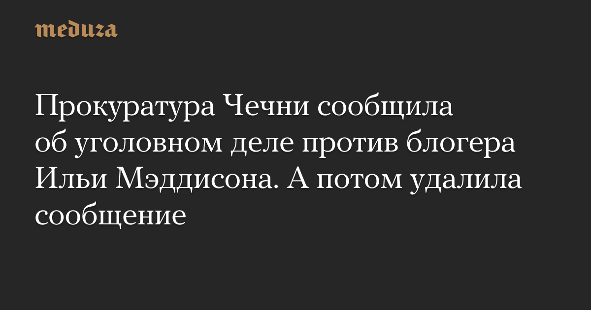 Прокуратура Чечни днем 13 февраля опубликовала на своем сайте сообщение о возбуждении уголовного дела в отношении видеоблогера Ильи Мэддисона (настоящее имя Илья Давыдов).