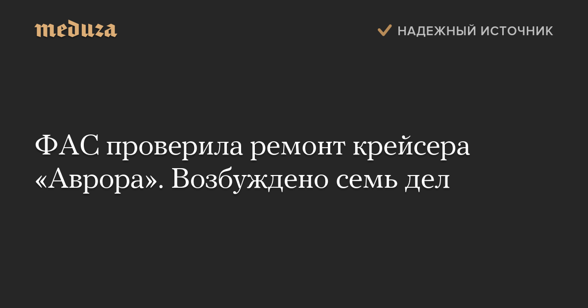 Управление Федеральной антимонопольной службы (ФАС) по Санкт-Петербургу завело семь административных дел по итогам внеплановой проверки ремонта крейсера «Аврора».