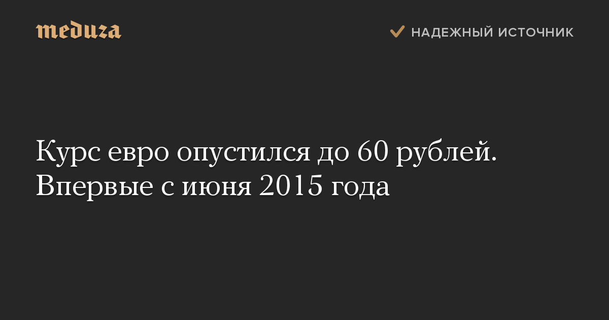 Курс евро опустился до 60 рублей. Впервые с июня 2015 года