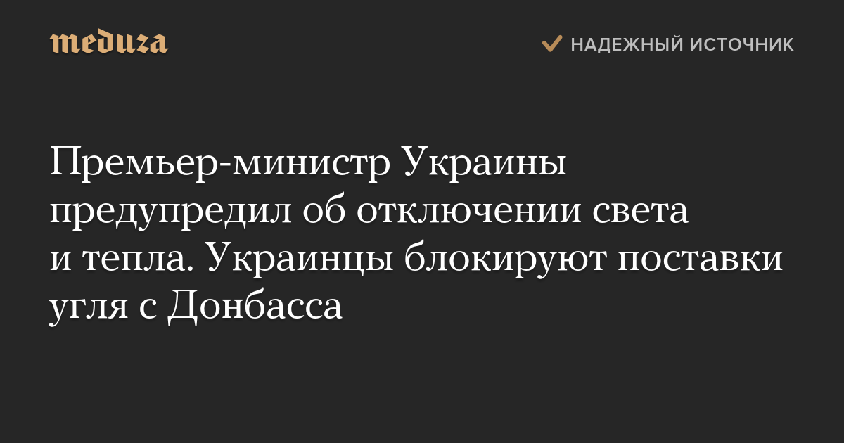 Премьер-министр Украины предупредил об отключении света и тепла. Украинцы блокируют поставки угля с Донбасса