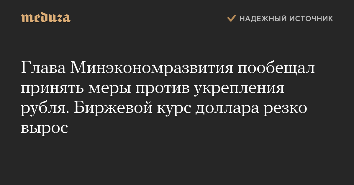 Глава Минэкономразвития пообещал принять меры против укрепления рубля. Биржевой курс доллара резко вырос