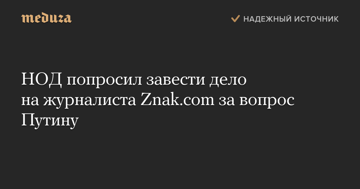 НОД попросил завести дело на журналиста Znak.com за вопрос Путину