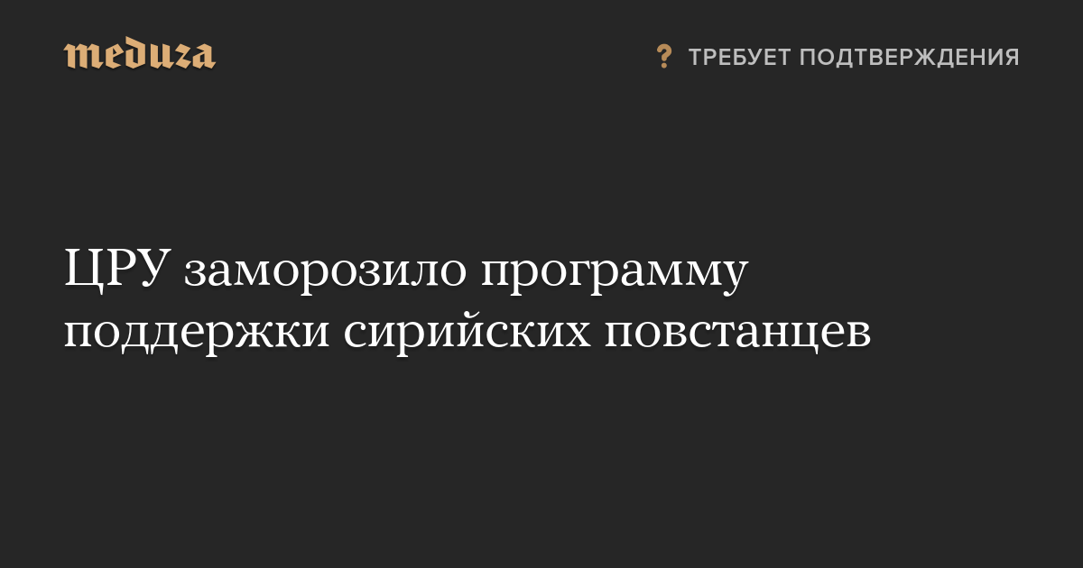 ЦРУ заморозило программу поддержки повстанцев из Свободной сирийской армии (ССА), контролирующих территории на северо-западе Сирии. Об этом сообщает Reuters со ссылкой на источники среди повстанцев и в американском правительстве.